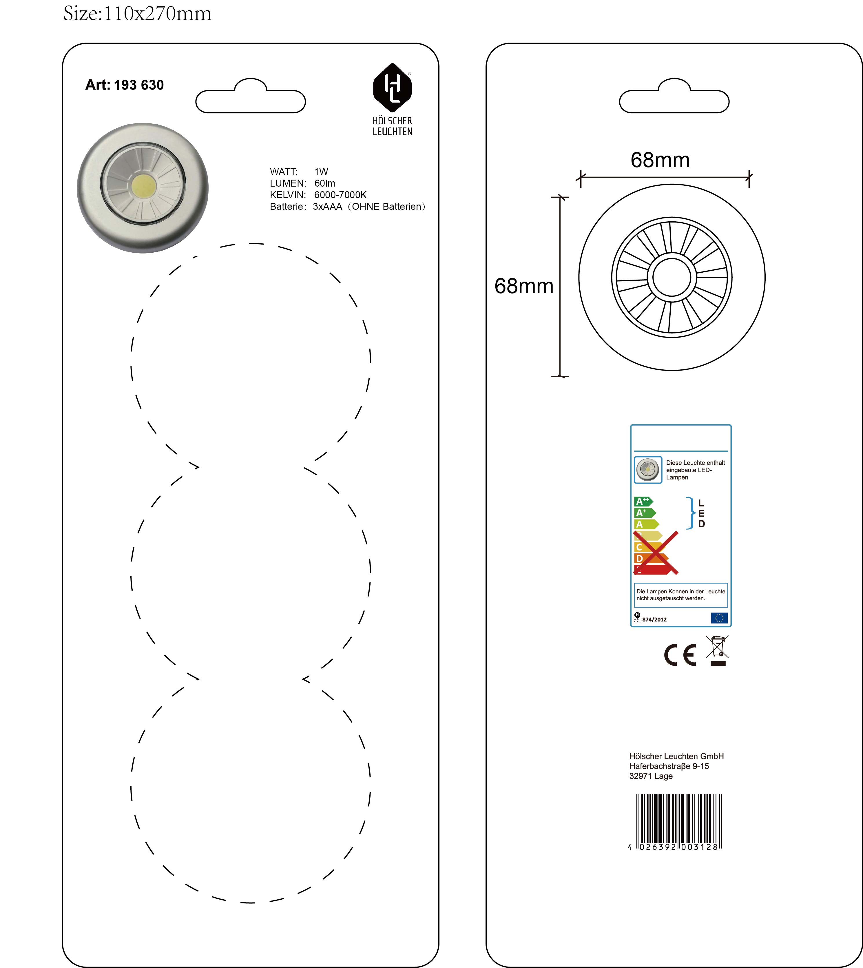 LED Push Light COB 3er Set 80lm, 1W, batteriebetrieben, Batterien exkl.